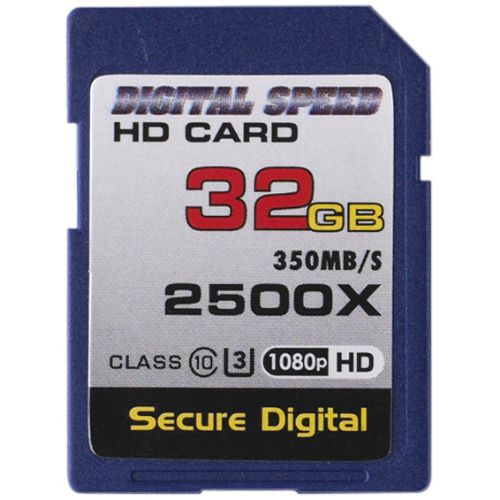Capture Full HD, 3D, and 4K content with the Digital Speed 2500X 32GB Professional High Speed Mach III 350MB/s Error Free (SDHC) HD Memory Card Class 10 Memory Card. Each of the included SDXC memory card meets the UHS Speed Class 10 specification with maximum data speed of 350 MB/s. While this card is designed to meet the needs of those requiring enhanced data transfer rates, it remains backwards compatible with devices requiring UHS-II, Class 10 memory cards.